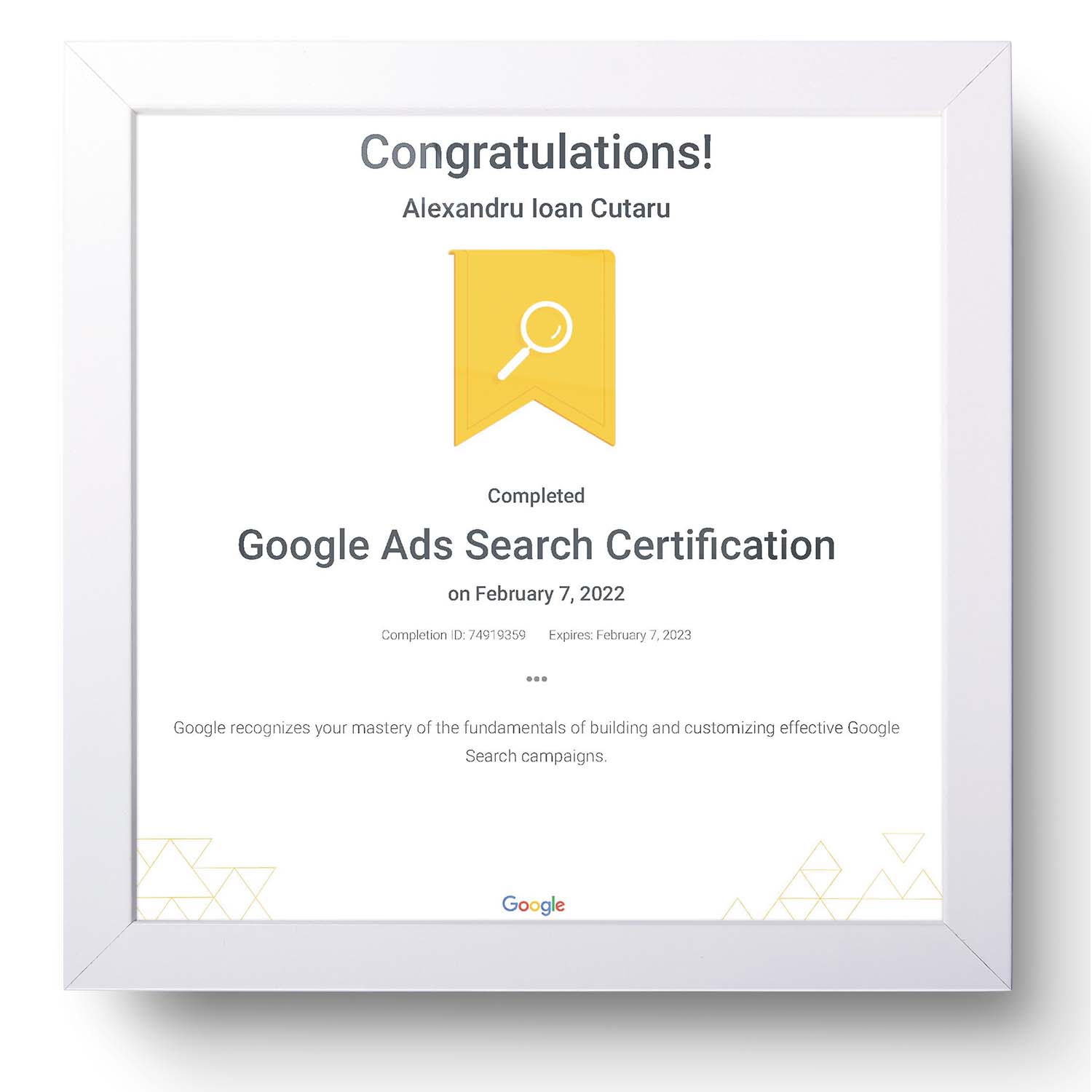 Suntem parteneri Google de 10 ani de zile, prima certificare Google Ads fiind obținută în 2012.